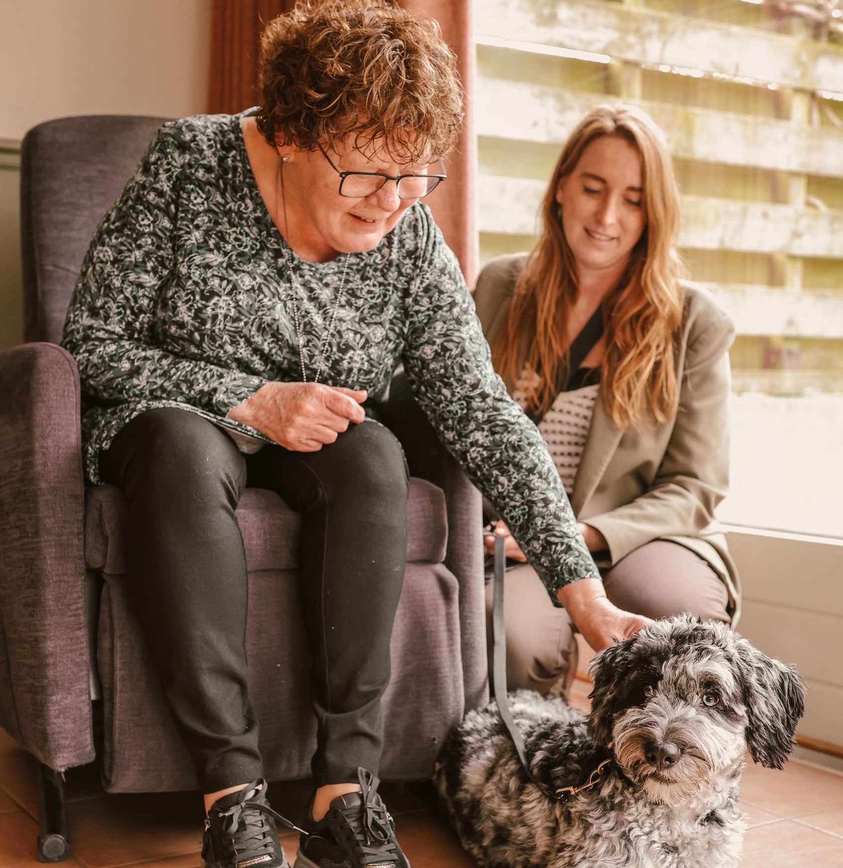 Veel bewoners reageren instinctief op de warmte en voorspelbaarheid van een hond. Een glimlach, een hand die naar voren komt, een stukje ontspanning in de schouders: het zijn signalen dat contact nog steeds mogelijk is. De oefeningen die jij je hond leert, vormen de brug tussen bewoner en hond, en maken dierondersteunde zorg écht betekenisvol.